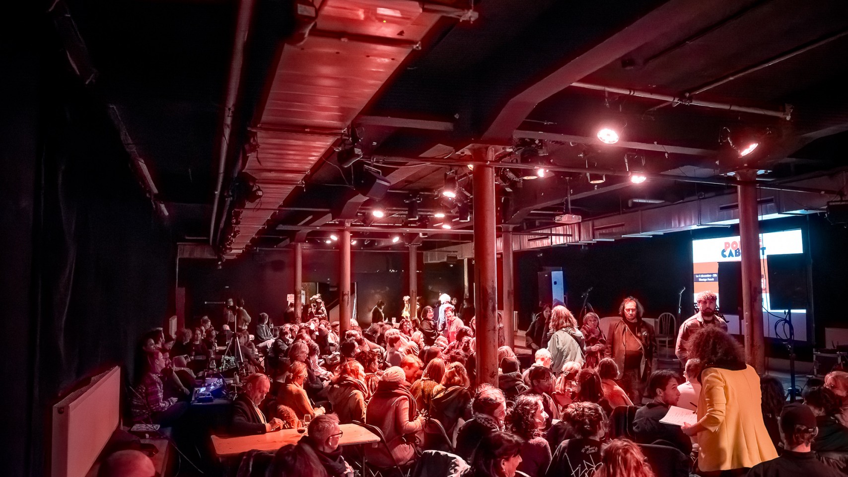 Lors des soirées "poésie-cabaret", les Écuries du Manège se transforment, de manière éphémère, en cabaret poétique. Autour de tables, un verre à la main, le public est invité à prendre place, à écouter, à se laisser porter par les mots de nos poéte·sse·s.